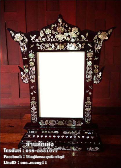 กรอบสัญญาบัตร ฝังมุก ลายไทย มุกไฟ100%